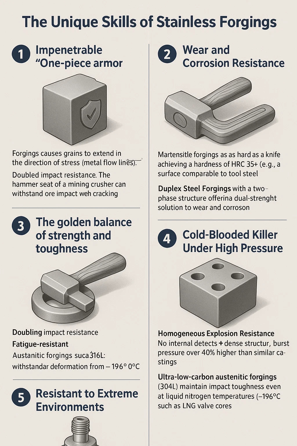 Hem sertlik hem de esneklik: Östenitik dövme parçalar (316L gibi) inanılmaz derecede sağlamdır ve -196°C'den 800°C'ye kadar deformasyona dayanıklıdır.